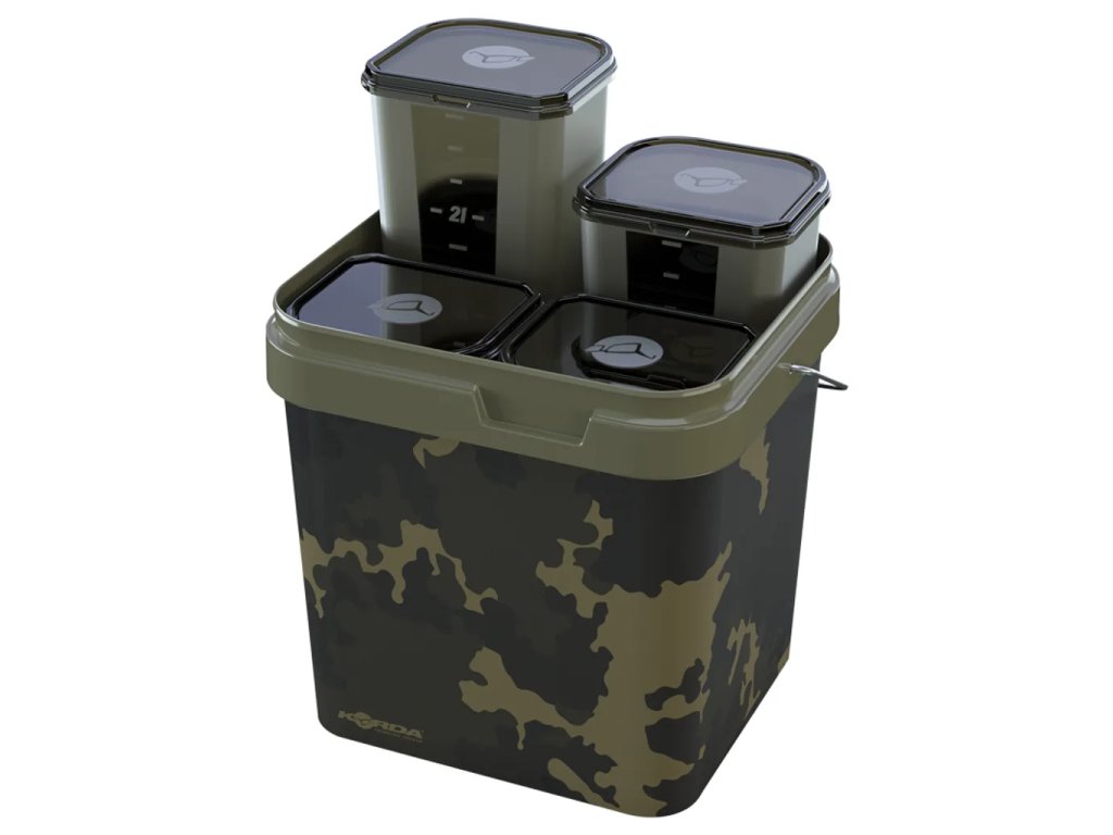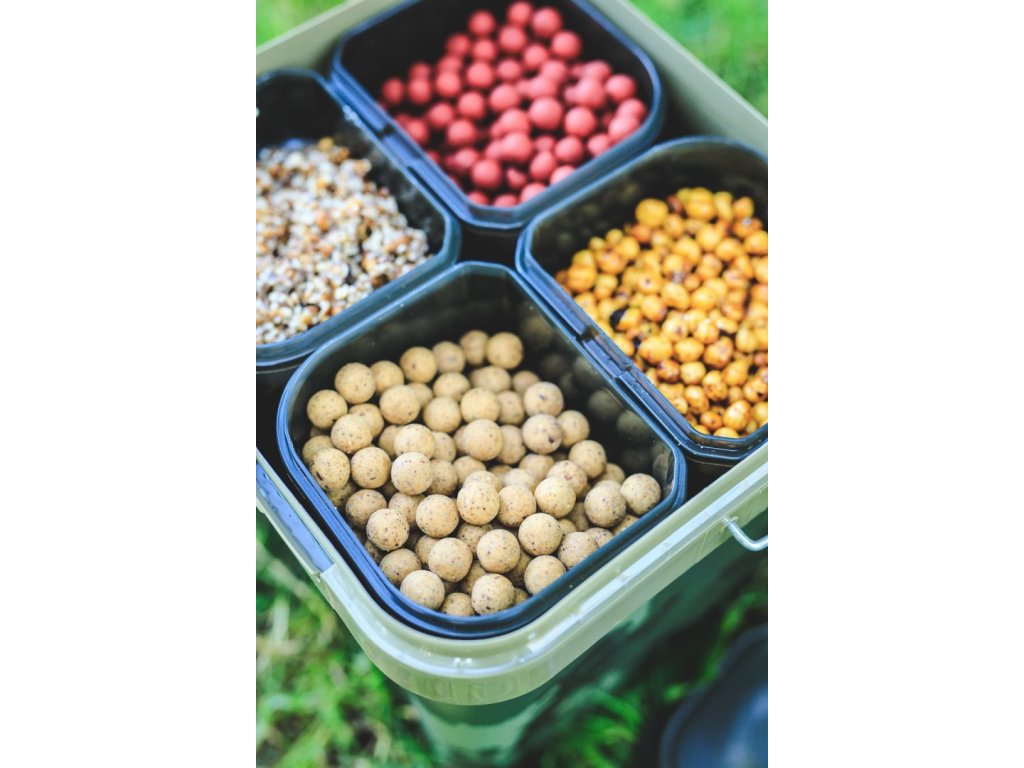 Tento praktický systém má objem 17 litrov a je dodávaný so štyrmi samostatnými boxmi, z ktorých každý možno naplniť niečím iným a kde buď nechcete miešať všetky návnady dokopy, alebo ich chcete pripraviť priamo na mieste. Vďaka tomu je vhodný pre situácie, keď chcete krmiť návnadami rôznych veľkostí, a poskytuje vám ľahký prístup ku všetkým návnadám v jednom vedierku, avšak stále vám umožňuje mať všetko rozdelené podľa vašej potreby – na rozdiel od toho, keď ich zmiešate dokopy. Je tiež skvelý pri použití spodových zmesí, ktoré obsahujú drobné častice a pelety, a kde miešanie vopred môže spôsobiť, že niektoré druhy krmiva, ako je konope, vyschne a pláva, alebo sa pelety rozpadnú viac, než by ste chceli.